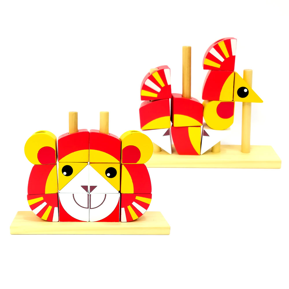 Estos hermosos Bloques Apilables de Animales Variados consiste en armar su animal preferido estimulando la autonomía por el juego. El juego consiste en armar distintos animales con un solo didáctico. Además ayuda a desarrollar las siguientes habilidades: